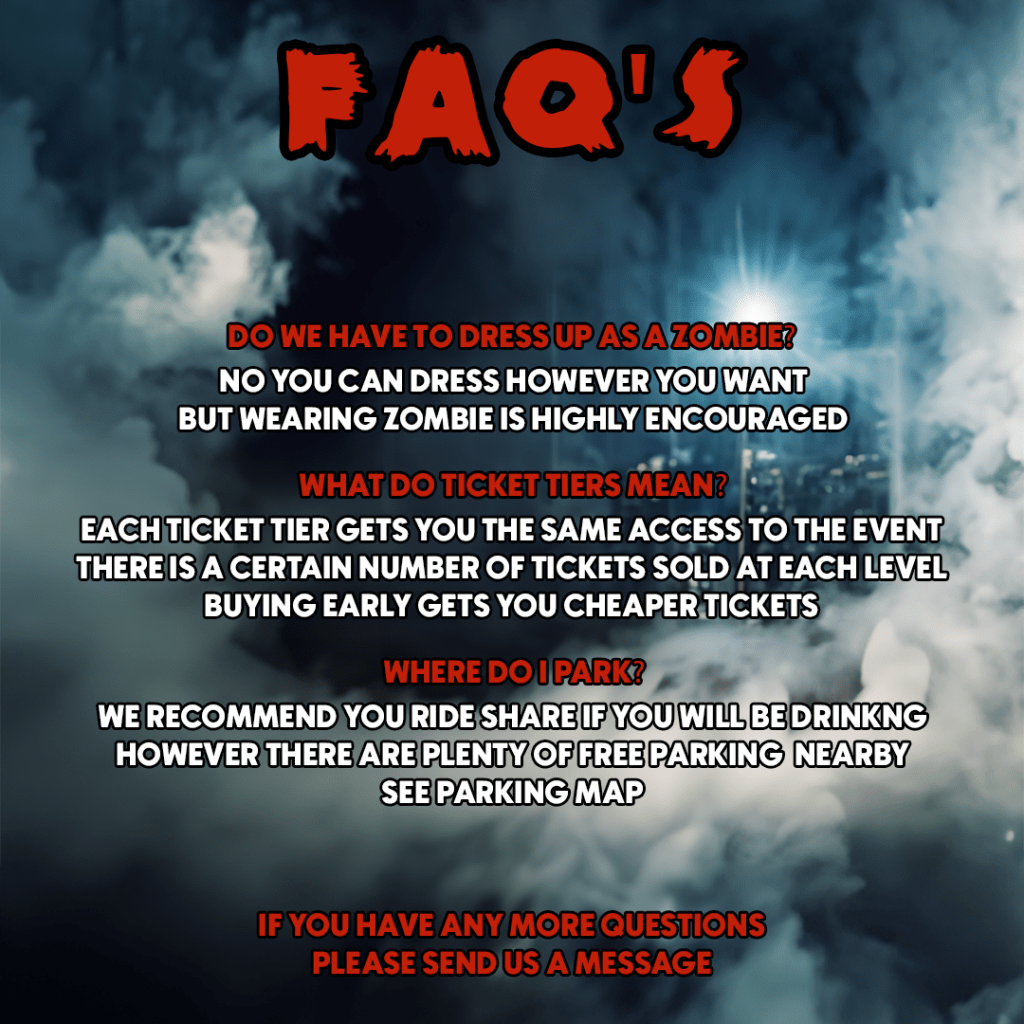 At 2am we will hold “Prom Court” and give out cash prizes for “sexiest zombie” “scariest zombie” & “most creative zombie”