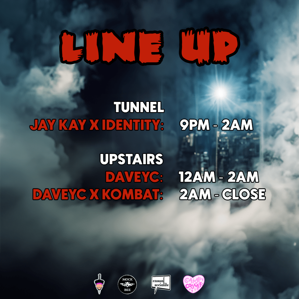 We’ve recruited DJs Identity and Jay Kay to keep you grooving on a B2B open format set filled with club remixes and a even a few slow tracks so you can get real close to your date and maybe bring some things “back from the dead”